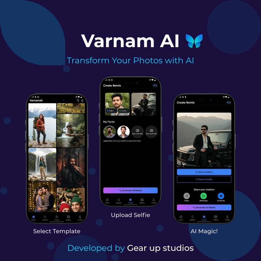 Varnam AI delivers a clean and modern AI editing experience for users who want instant transformation results. The app design and development were optimized to keep the experience fast and smooth even for heavy image processing tasks.